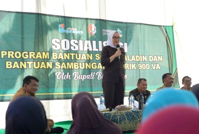 Saat sosialisasi program bantuan bagi RTLH atau Aladin dan bantuan sambungan listrik di Desa / Kecamatan Tambakrejo, Kabupaten Bojonegoro, Selasa (01/08/2023), Bupati Anna Mu’awanah mengatakan upaya pemerintah untuk meningkatkan kesejahteraan masyarakat tidak ada hentinya. Yakni bagi masyarakat yang masuk dalam kategori tidak mampu.