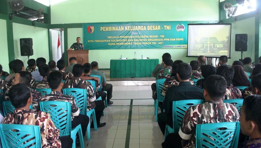 Jagatpos.com, Bojonegoro – Bertempat di Gedung Ahmad Yani, Kamis (16/03/2017). Kodim 0813 Bojonegoro menggelar pembinaan Keluarga Besar TNI (KBT) dengan tema “Melalui Pembinaan Keluarga Besar TNI, Kita Tingkatkan Solidaritas dan Soliditas Organisasi PPM dan FKPPI Guna Mendukung Tugas Pokok TNI-AD”.